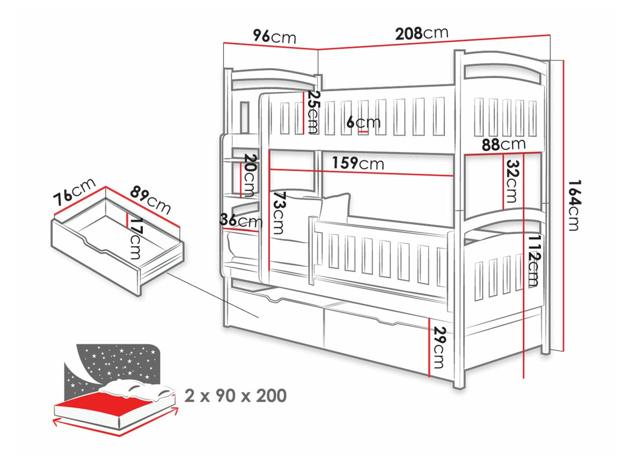 - 90 x 200 cm