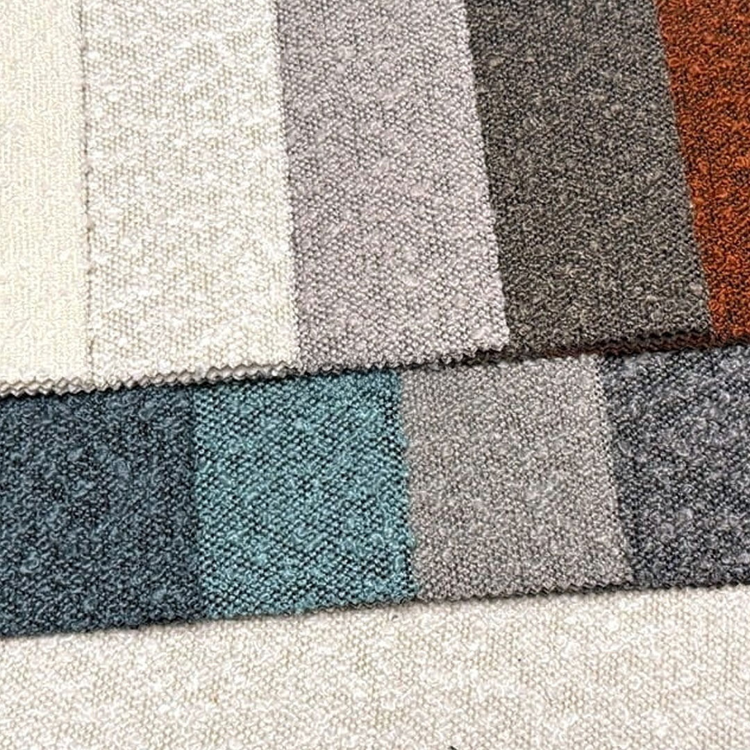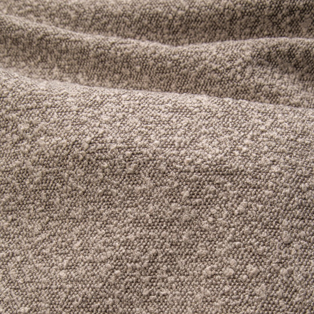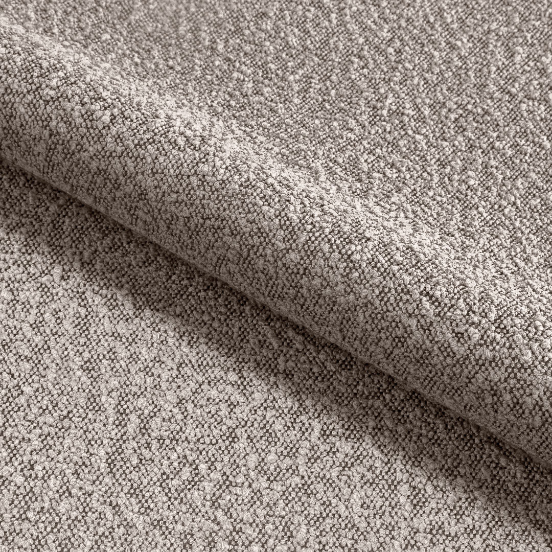 This fabric features a distinctive pattern of loops and knots in varying sizes, adding unique character and texture to any piece of furniture. Certified by the textile institute, it contains no allergenic substances. Its surface is protected against rapid liquid absorption, which makes the fabric easy to maintain and ideal for daily living. To preserve its quality and appearance, it is recommended to clean the surface using only gentle, upholstery-specific cleaning products.