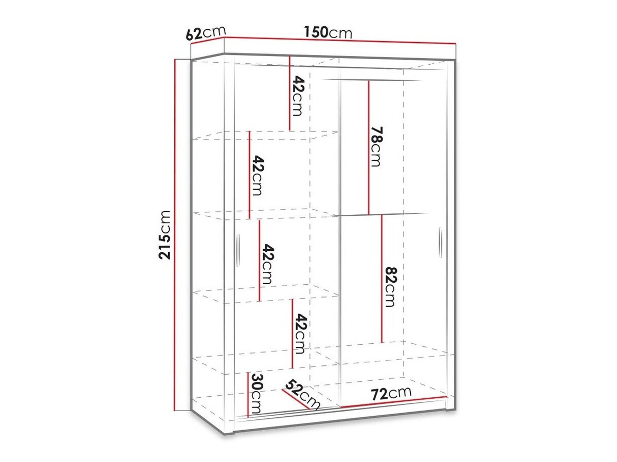 The wardrobe is very nice as presented, the quality-price ratio is acceptable. It is very spacious, you can make various combinations in terms of coat racks or shelves. Only a small drawback with the doors that are heavy to open and close. Generally the closet is complete and I am happy with the purchase.