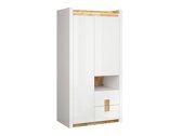 This furniture collection is unique in that it offers a wide selection of furniture models for various home spaces. Create a solid interior in both the living room and the bedroom. What if the furniture fits in the hallway as well? Or in the office? All of this is possible with this collection. The light color palette will look great in both small and large spaces. The facades of the furniture are dominated by glossy white color, which is perfectly complemented by wood-colored details. The color and patterns of the wood are beautifully revealed in the furniture tables, giving a feeling of coziness. The handle solution also catches the eye, which fits in not only as handles, but also as a decor detail. There will certainly be enough space for storing things, the furniture has plenty of drawers and shelves. Additional charm is provided by integrated energy-saving LED lighting. This solution will allow you to enjoy a cozy light that will highlight the wood-colored inserts. The silent closing mechanism will protect the doors and drawers from closing quickly.