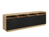 The furniture collection is sure to find its place in the homes of people who love modern interior design. The black colors furniture is enlivened by oak sides. The main feature of this collection is its highly matt finish. It is coated with a special 'Supermatt' film, which protects the surface of the furniture from fingerprints. The collection's exclusive design is underlined by the 'Push to open' mechanism, which makes it easy to open the door of the selected piece of furniture with just one touch. The furniture has rounded corners for extra protection for children playing nearby. LED lighting can be installed in the open areas of the furniture. The collection includes all the basic living room furniture: a shelf, a coffee table, a hanging shelf, as well as wardrobes and TV tables in several different sizes.