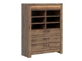 If you want your living room to be cozy, you should check out this collection's furniture. After decorating your home with this furniture, you can enjoy 'Reveal' oak-colored furniture, combined with metal handles, this combination creates a harmonious design. Create an even more stylish living room by choosing furniture with integrated or optional LED lighting, which will give the furniture uniqueness. The collection uses tempered glass, which is safer and has better mechanical resistance than ordinary glass. Also, this furniture has a silent closing mechanism, thanks to which the drawers and doors are protected from sudden closing.