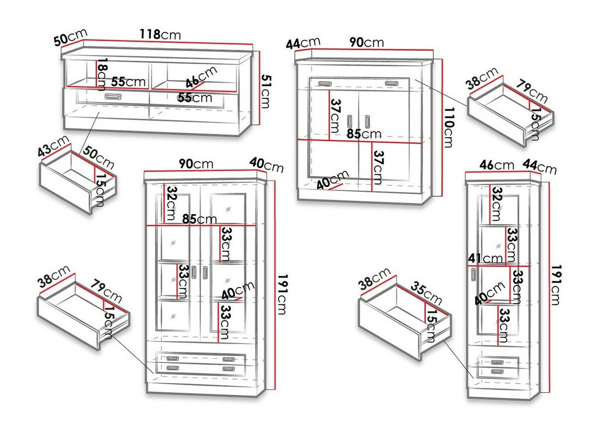 191 x 90 x 40; 191 x 46 x 44 cm