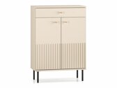 This furniture collection stands out with its unique aesthetic, where smooth surfaces are stylishly combined with contemporary grooves. Elegant gold-toned minimalist handles add a subtle yet refined design accent. The integrated soft-close mechanism ensures gentle and quiet closing of doors and drawers, while energy-efficient LED-lit shelves create a cosy atmosphere at home. The collection is also well suited for homes with robotic vacuum cleaners - a practical solution that simplifies everyday cleaning and offers added convenience.