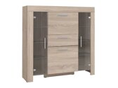 The display case has good dimensions, I especially like the height. the light tone of the furniture is also modern. The handles for opening the doors, however, seem to be unstable, because they should not be screwed tightly, the glass may crack. Everything is OK now.
