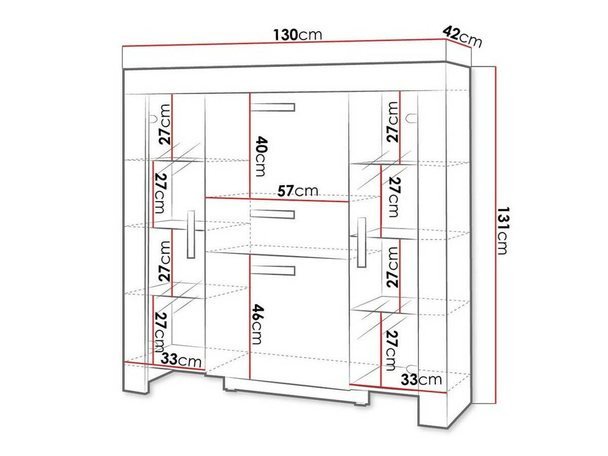 The display case has good dimensions, I especially like the height. the light tone of the furniture is also modern. The handles for opening the doors, however, seem to be unstable, because they should not be screwed tightly, the glass may crack. Everything is OK now.