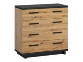 This furniture collection offers furniture for the living room and bedroom. Modern design and elegant lines complement each other creating a perfect combination. The collection catches the eye with its warm colors and wood patterns. Matt's black panels is matching with oak facades. This combination of colors complements each other, emphasizing the shape of the furniture. Tempered glass is used in the showcases, which is more resistant than ordinary glass. A bed with an exclusive design will become the highlight of the bedroom. Soft headboard, bed linen box, gas lifting mechanism, everything you need for your perfect rest. The edges of the furniture in this collection are protected with finishing tape, which is usually used to protect the edges of the panels.