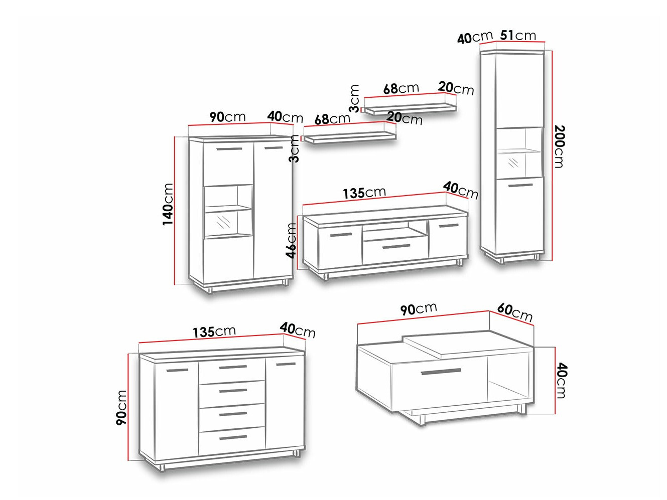 Chest of drawers dimensions: