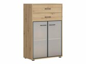 If you are looking for furniture for a functional office - this collection is meant for you. The 'Artisan' oak and black color combination add modernity to the furniture. The minimalistic black plastic handles blend perfectly into the design. The furniture in the collection is made of laminated chipboard with a scratch-resistant surface. With this protective film, furniture becomes resistant not only to scratches, but also better protected from moisture or stains. The silent closing mechanism built into the furniture will further improve the user experience and ensure the silent opening and closing of doors and drawers. The furniture has both open and closed storage areas. This allows personal belongings to be stored on visible shelves or hidden behind doors. The collection uses heat-treated, tempered frosted glass. Its resistance is 5-6 times higher than ordinary, thermally untreated glass. The glass is shaped by a black aluminum frame. The shelves in the collection are universal. During their assembly, it is possible to decide which way the door will open. The drawer units use castors instead of legs, which will make it extremely easy and convenient to move furniture in the room. Also, the lock-in shelves will allow storing personal items even more securely.