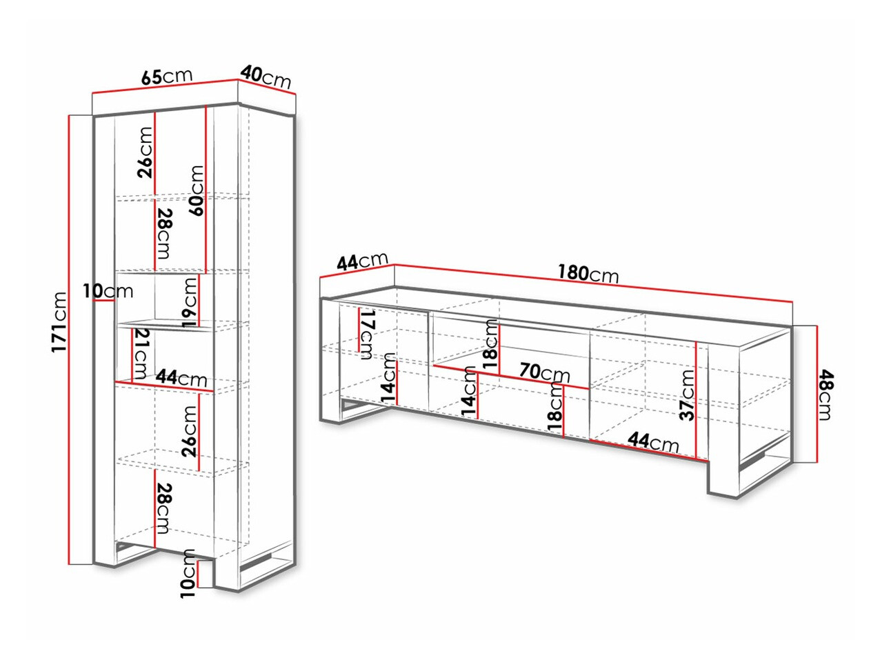 48 x 180 x 44 cm