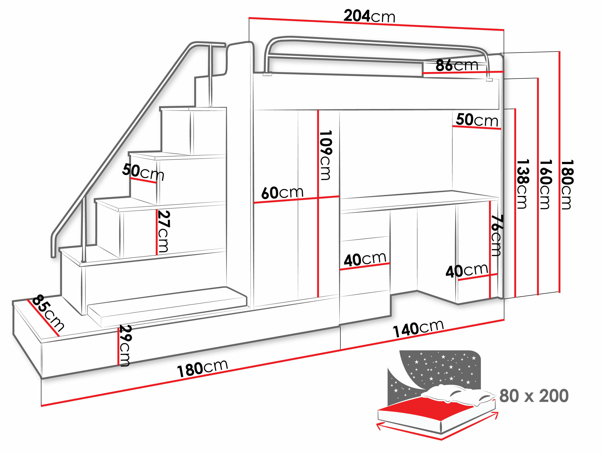 • 80 x 200 cm