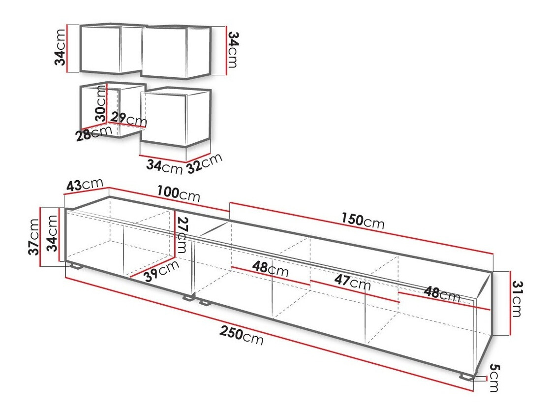 37 x 250 x 43 cm