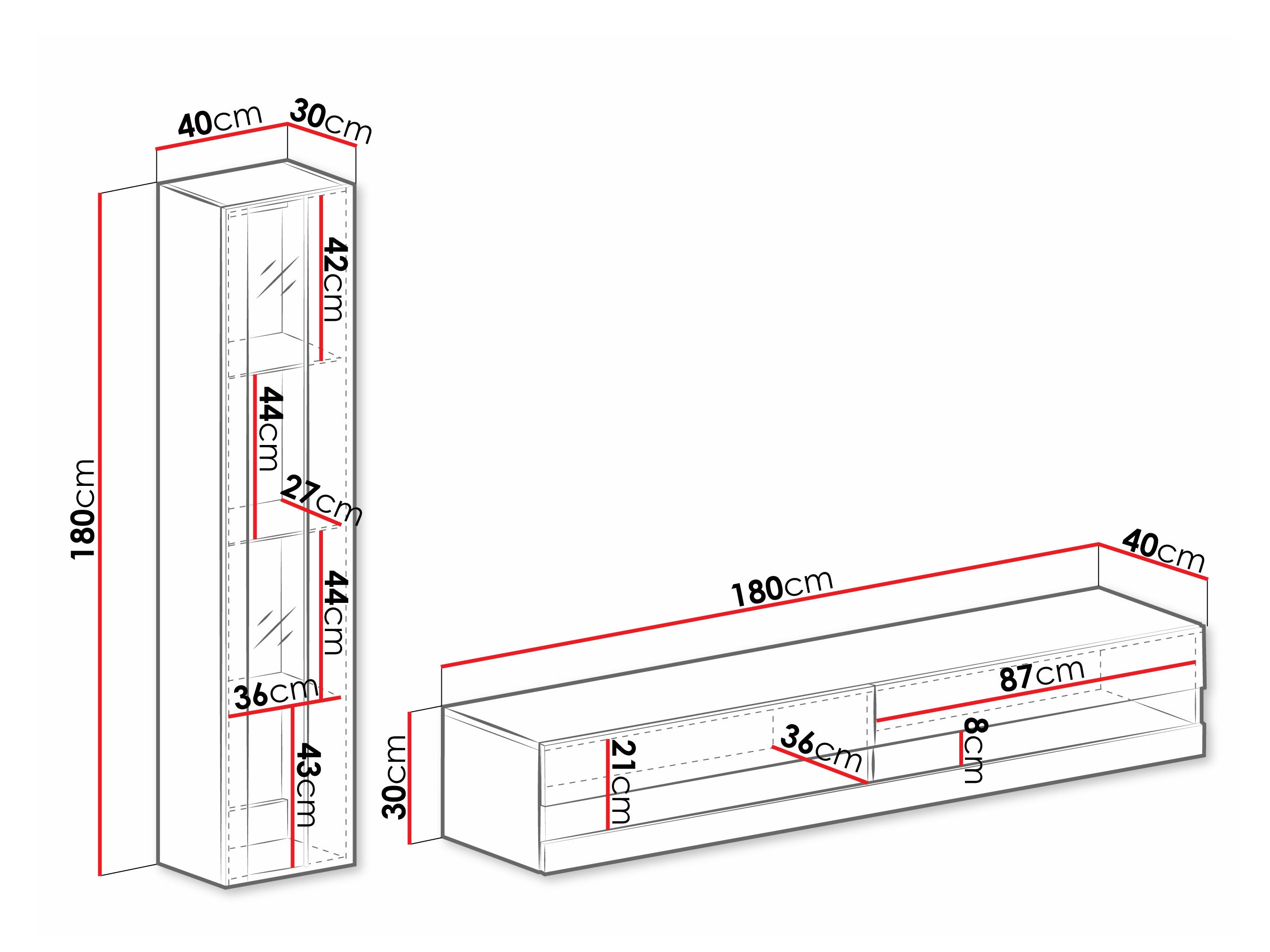30 x 180 x 40 cm