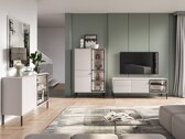 These contemporary style furniture pieces stand out with their clean lines and refined aesthetic, allowing them to blend effortlessly into interiors of various styles. Minimalist handles are combined with a convenient push mechanism, ensuring the fronts remain visually seamless and uncluttered. An integrated soft-close system guarantees slow and smooth closing of doors and drawers. Built-in LED lighting within the shelves adds an extra sense of warmth and modernity, subtly illuminating the space and highlighting the furnitureβs design details. It is an excellent choice for those seeking furniture that combines functionality with elegant design.