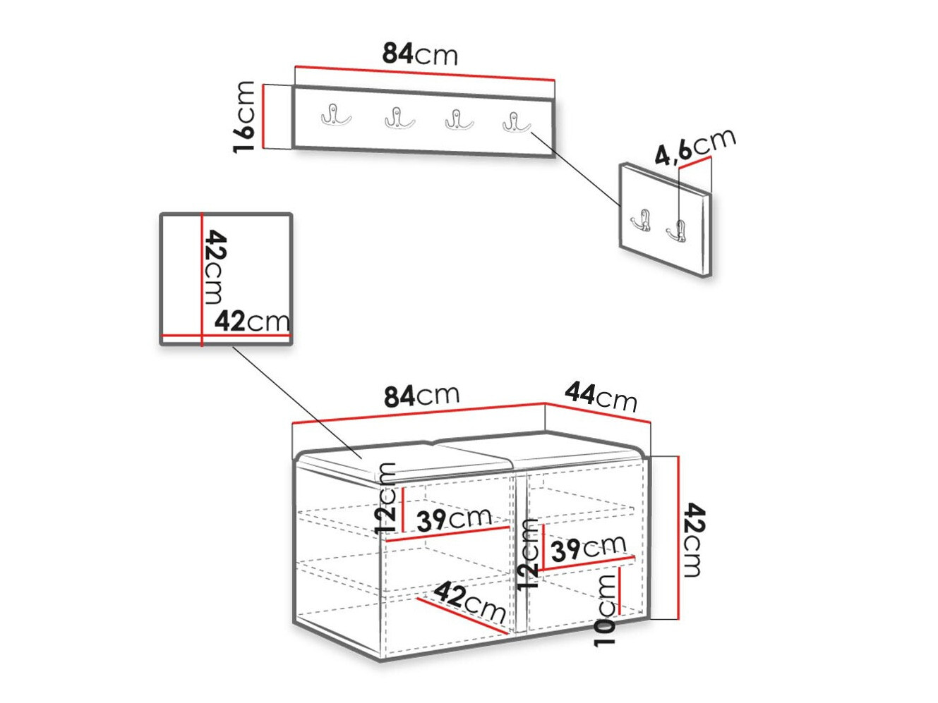 Shoe cabinet dimensions: