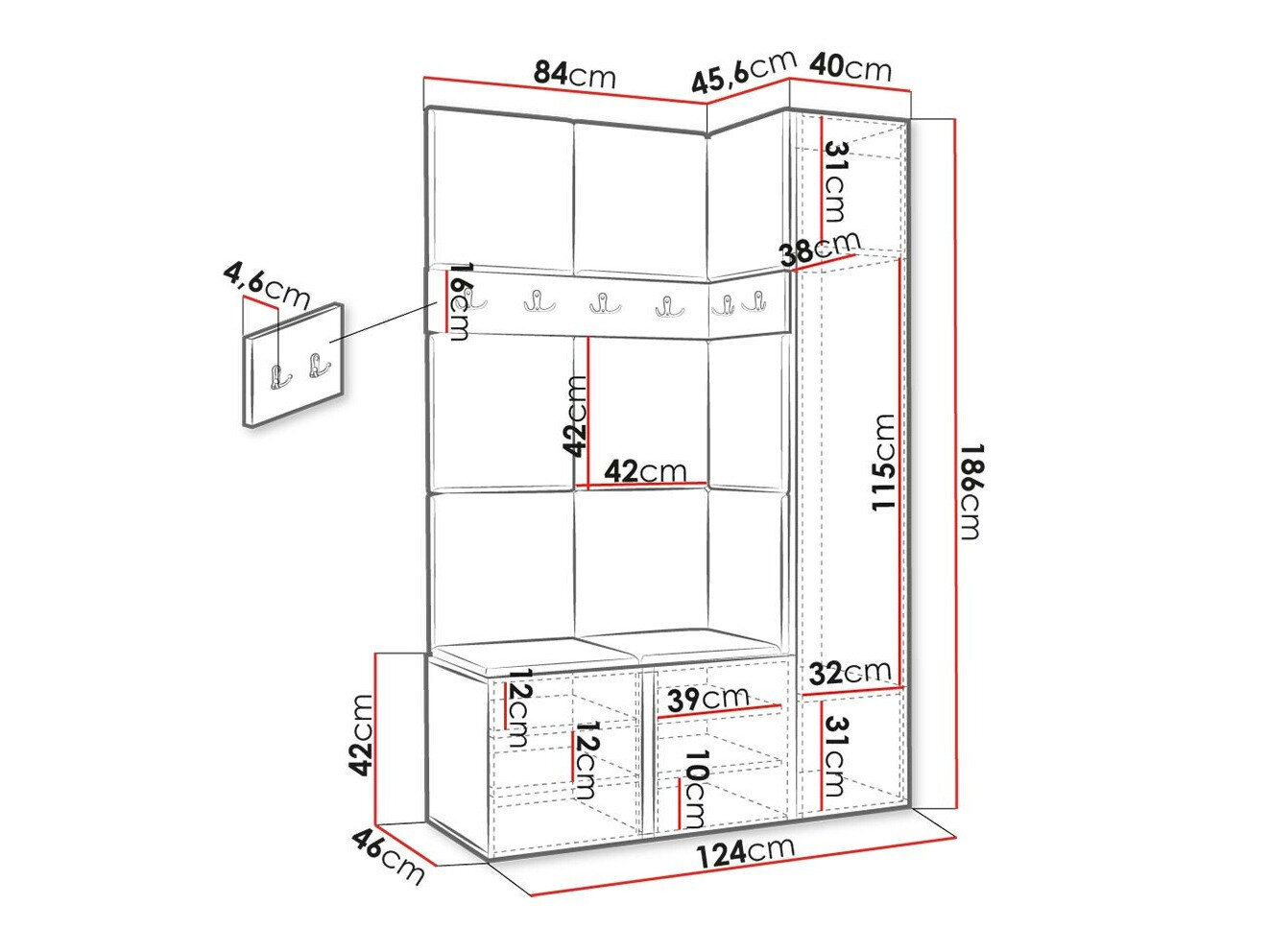 Coat rack dimensions: