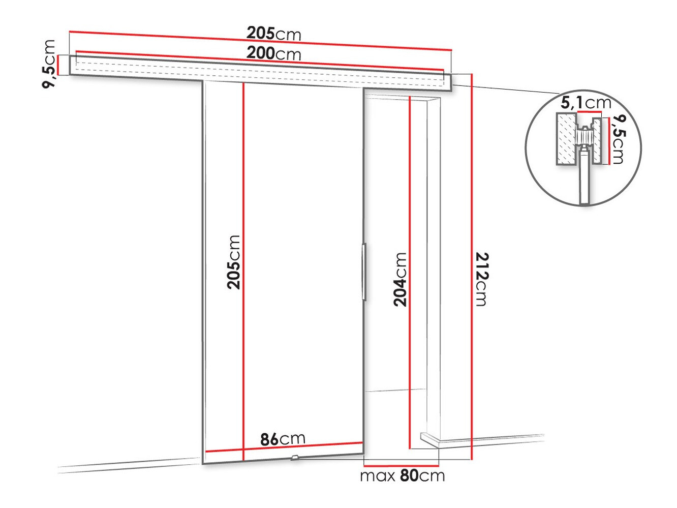 Sliding door system dimensions: