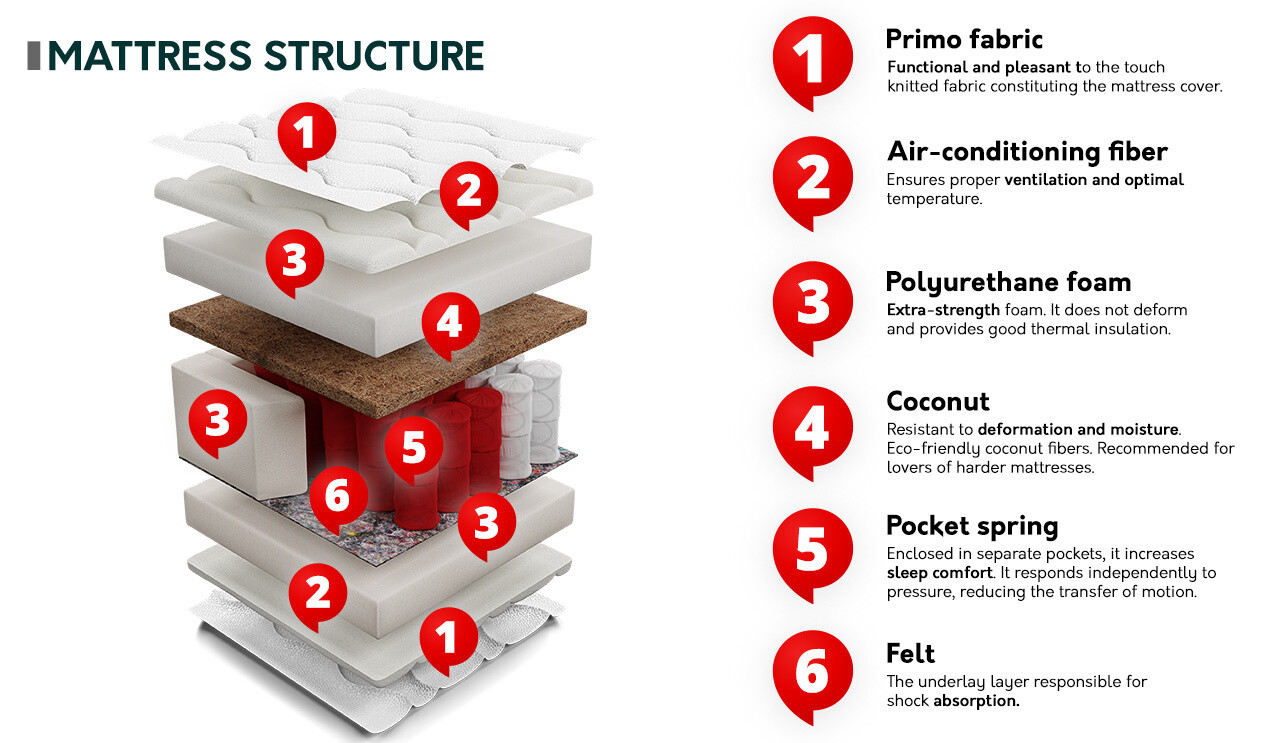 High quality, very comfortable. The best thing is that, like a spring, it does not transfer movement to the sleeping person. Stable.