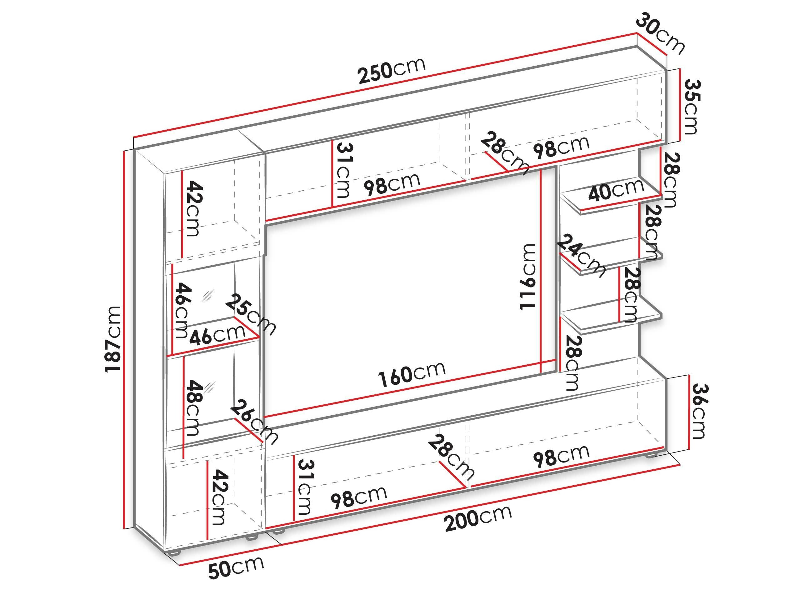 187 x 50 x 30 cm
