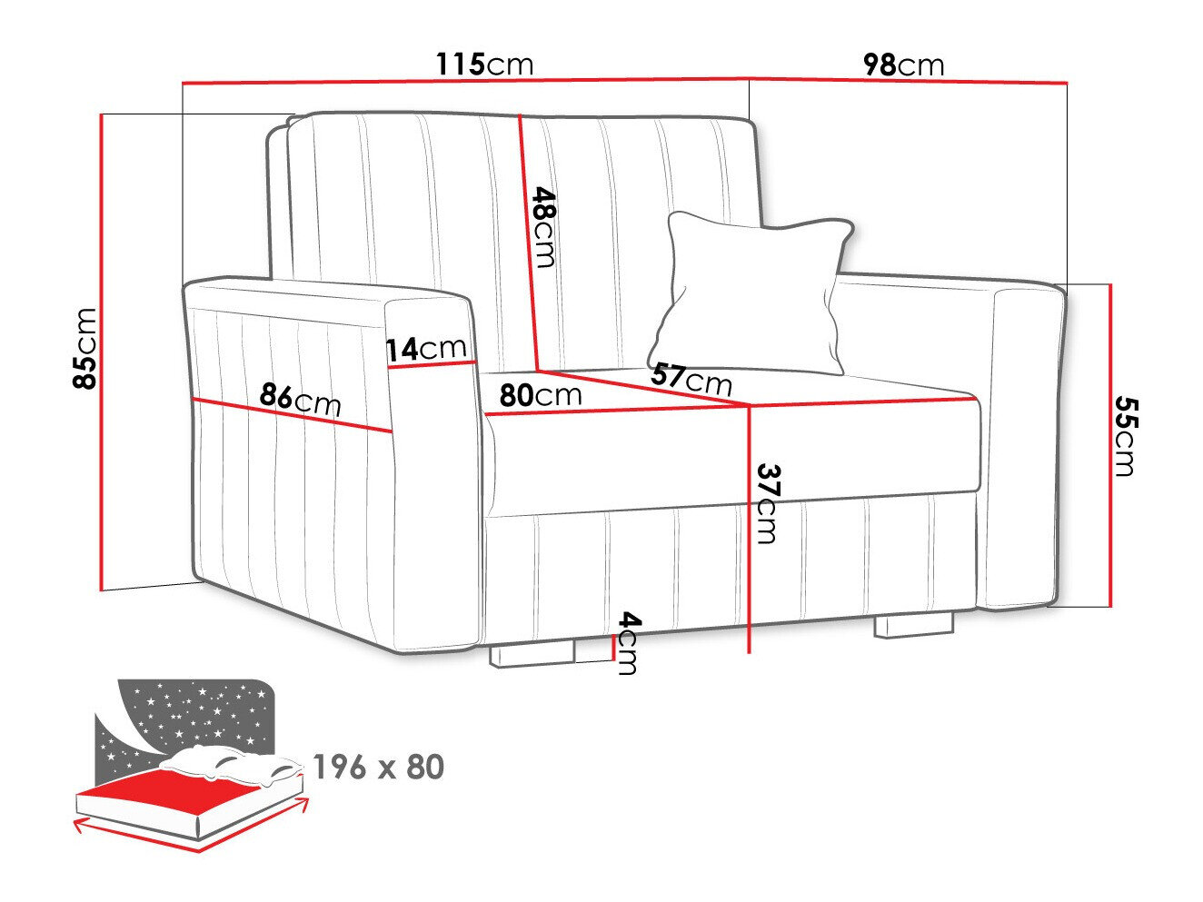 Sleeping area width: