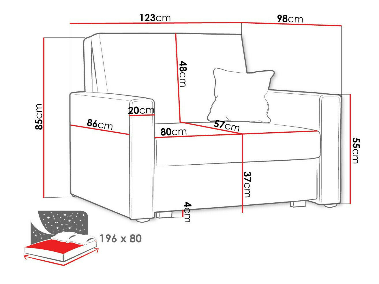 85 cm  123 cm  98 cm