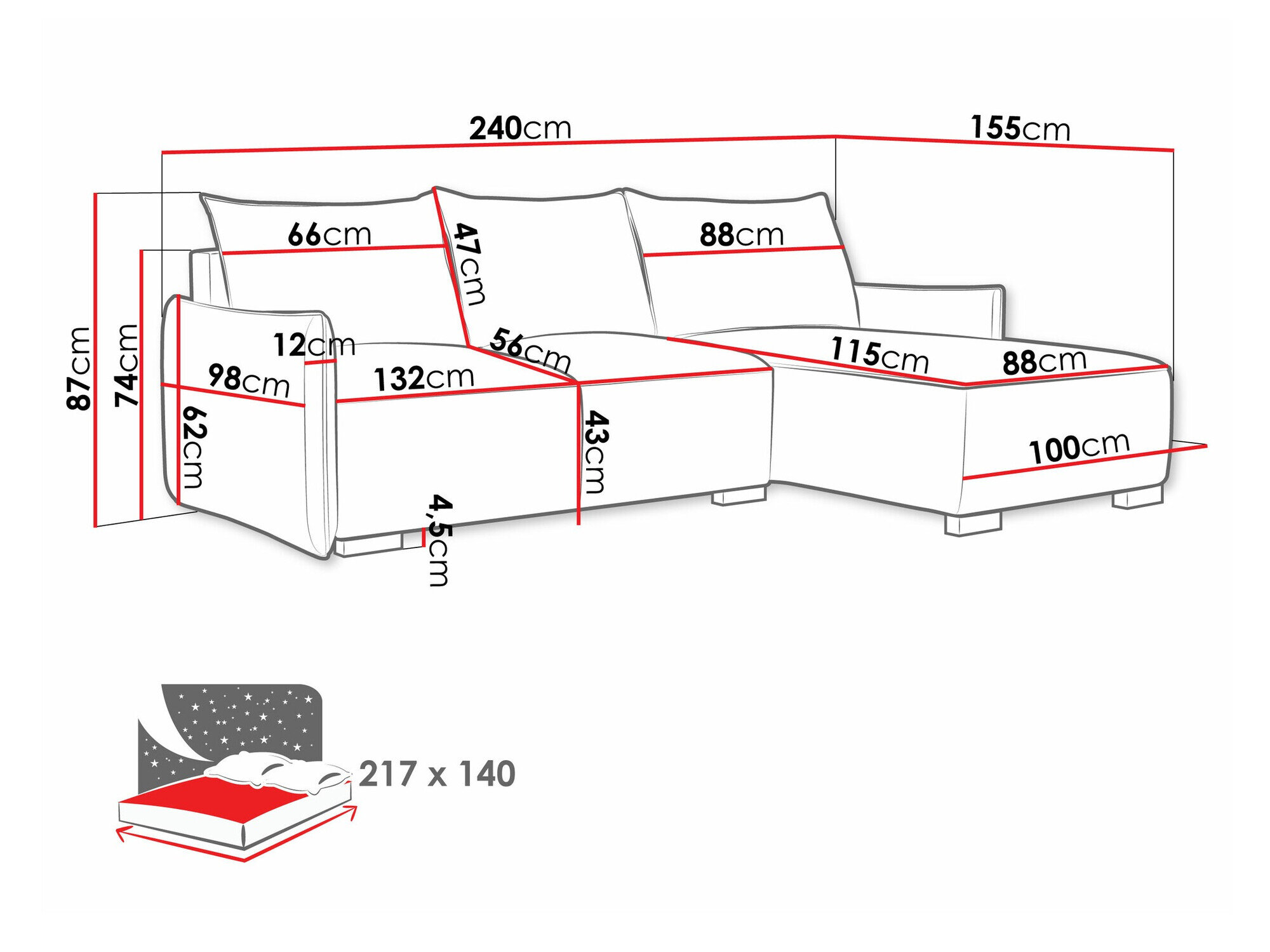 Sleeping area length: